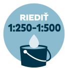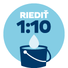 Ultrakoncentrát dávkujte pomocou 25 ml dávkovacej pumpičky z kanistra (viď. str. 15), z 1 l fľaše s dávkovacou odmerkou, alebo dispenzera (viď. str. 17) do systémovej fľaše (viď. str. 14) a zrieďte s vodou v pomere 1:100 (k 10 ml prípravku doplňte vodu do objemu 1 l).