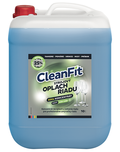 CleanFit mycí roztok do myčiek je koncentrovaný tekutý alkalický prípravok na umývanie riadu pre profesionálne strojové umývanie riadu s vysokou účinnosťou umývania a čistenia. Výrobok je vhodný na použitie v jednokomorových aj dvojkomorových umývačkách riadu, ktoré sú vybavené dávkovacím zariadením na tekuté umývacie prostriedky.